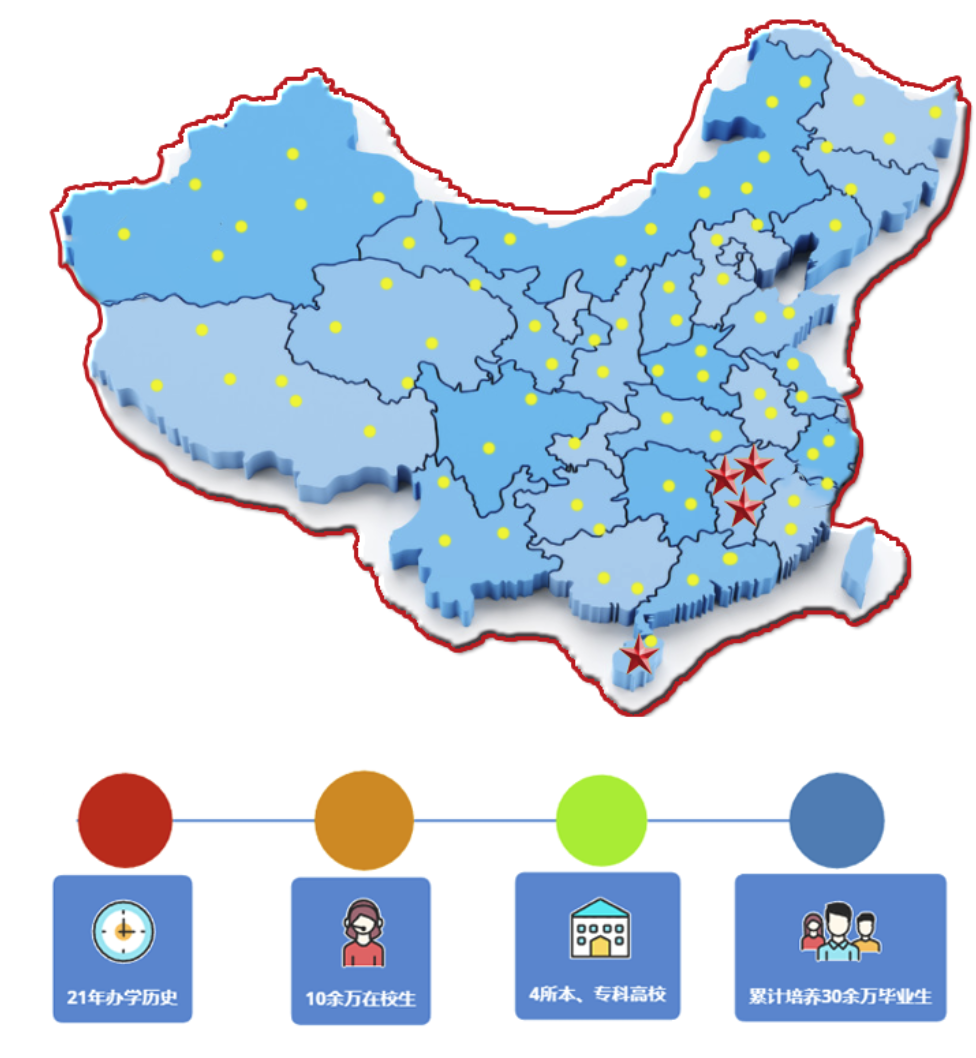 集团综合实力强劲,在中国江西、海南投资创办了多所高等院校,凝聚了3000余名来自世界各地的专家、博士,近3年来取得专利460余项、以航天微陀螺等为代表的科研成果26 项,形成了自己的“产、学、研、用”一体化的特色道路。集团下属高校在校生近10万人,累计培养毕业生30余万人。